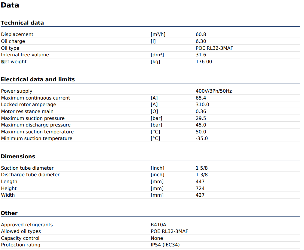 ZP385KCE-TWD-522 Scroll Refrigeration Compressor R410A 380-420/460V-3PH-50/60Hz Descrition